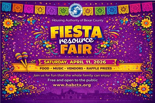 Bexar County, TX – February 20, 2026 – The Housing Authority of Bexar County, in partnership with the Bexar Management & Development Corporation, is excited to invite you to participate in our 2026 Fiesta Resource Fair on April 11, 2026, from 11:00 AM to 1:00 PM at 1954 E. Houston St., San Antonio, Texas 78202! We would be delighted to have you join us for this special community celebration.